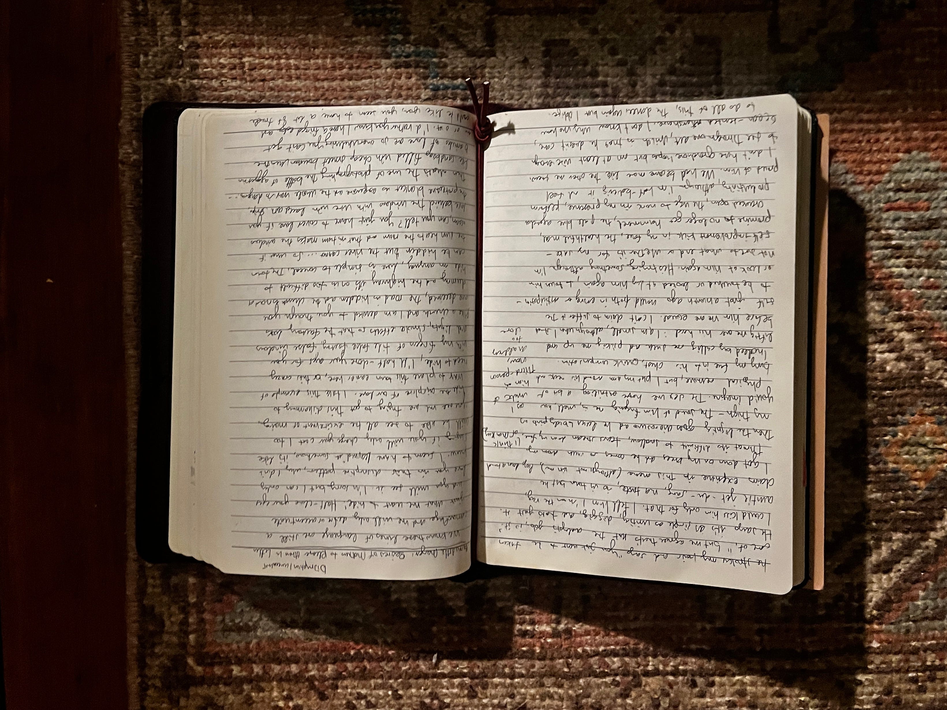 Davis instructs her novices to “revise notes constantly—try to develop the ability to read them as though you had never seen them before, to see how well they communicate,” and I’ll admit to making many minute alterations as the entries were converted from page to doc to draft. In the Substack stage, I removed dates and redacted proper nouns of people and places, leaving the entries somewhat opaque and coded, even sanitized. The practice of visiting the entries a third time and anonymizing them for the Internet offered another subtle chemical process: like my tripping confessional, I relived these things from an omniscient vantage, became aware of my own grip of narrative control, and most importantly, felt the gaps between the writing and my real, just-past experiences.